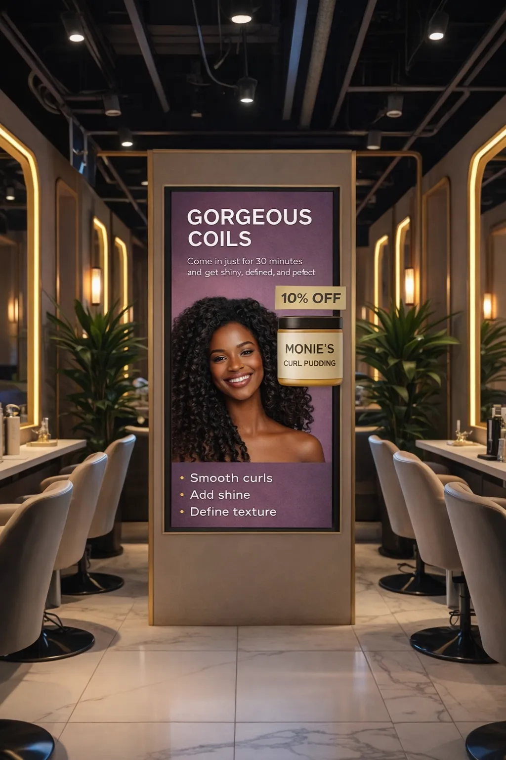 These ads can highlight: shop specials, membership deals, new services, employee spotlight, events, motivational messages, menu items, hand venue announcements.
