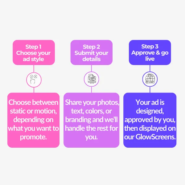 Static ads are single-image designs that stay on screen for the full duration of your slot. They’re perfect when you want a message that's instantly clear and understood.