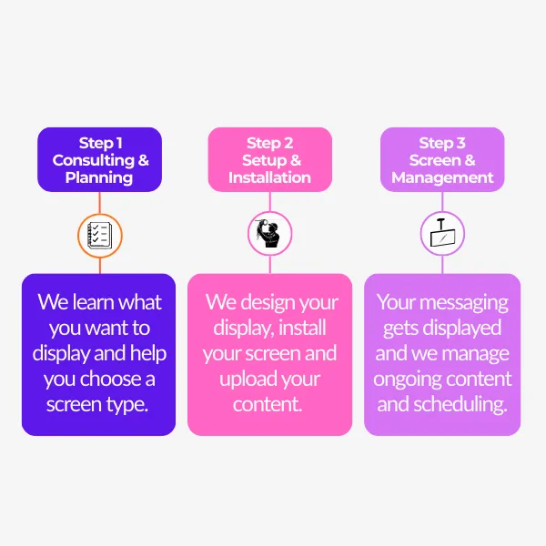 GlowTech makes in-store displays simple and stress-free. You can use your own screen or have us source one for you, and we’ll help you choose the setup that fits your space. Once installed, GlowTech manages the backend—content formatting, playlist updates, and ongoing screen performance—so you never have to deal with the tech.