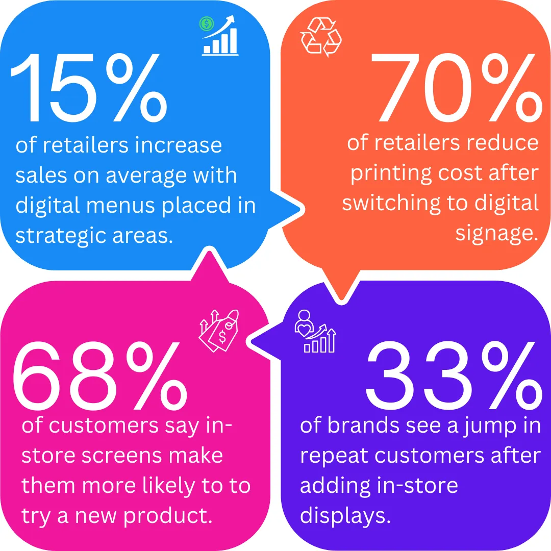 No more handwritten signs, outdated menus, or stacks of wasted paper. Digital displays help create a cleaner, more organized environment — while supporting eco-conscious practices by reducing printing waste and keeping your store visually consistent.