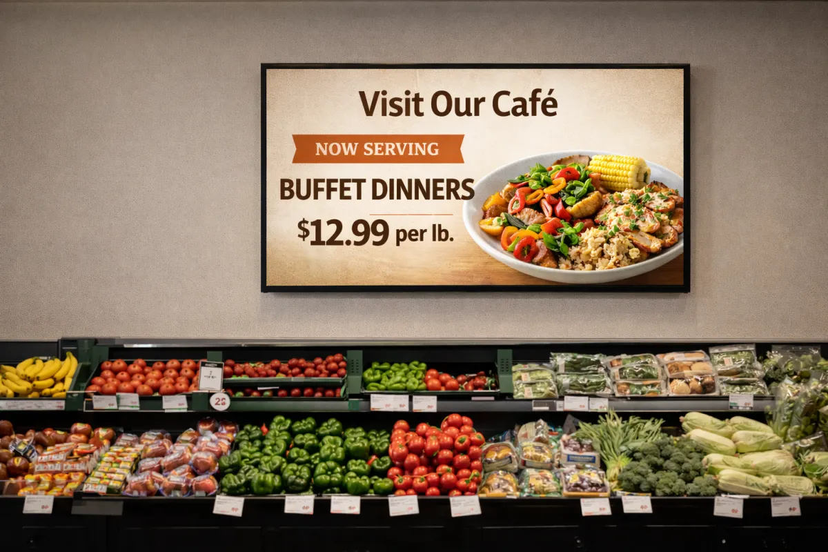 Whether you’re showcasing fresh produce, daily specials, seasonal menus, wellness products, or upcoming events, digital displays help customers notice things they would normally walk past.