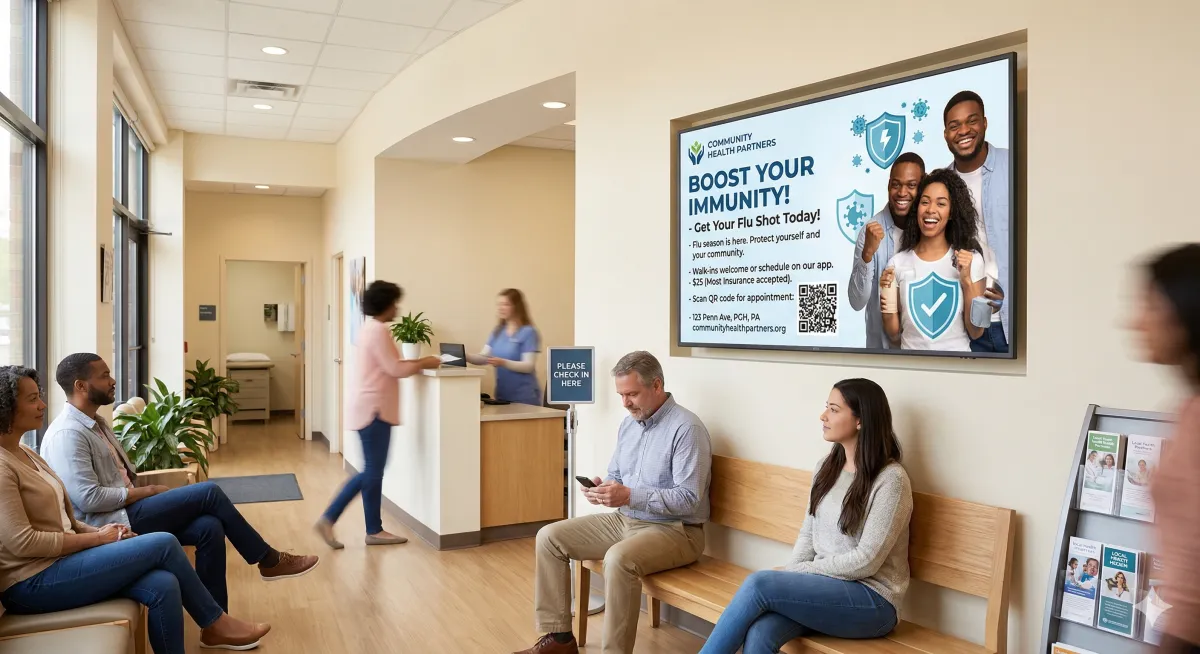 Digital signage reinforces your message by rotating in the background while your team focuses on serving customers, patients, tenants, or visitors.