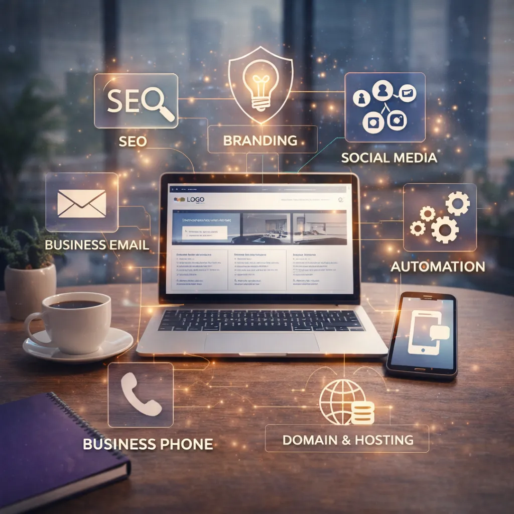 In addition to website creation, domain setup, hosting, and social media marketing, GlowTech Digital Solutions also helps establish the essential tools that support your online presence. This can include setting up a business phone number, branded business email, and visual brand styling so your business presents itself clearly and professionally across platforms.